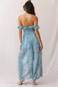Chic and feminine, this jumpsuit is perfect for strolling the farmers’ markets or beach boardwalk strolls with bae. Featuring a short lining and a bardot ruffle-trimmed neckline and sleeves; it’s classy, but just the right amount of sexy with its breezy splits up the front of each leg. It also features a belted waist-tie and soft chiffon fabric. Pair with espadrille wedges and a straw tote for a look we are all about.