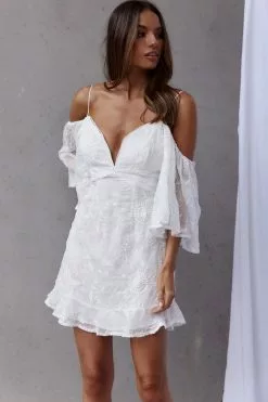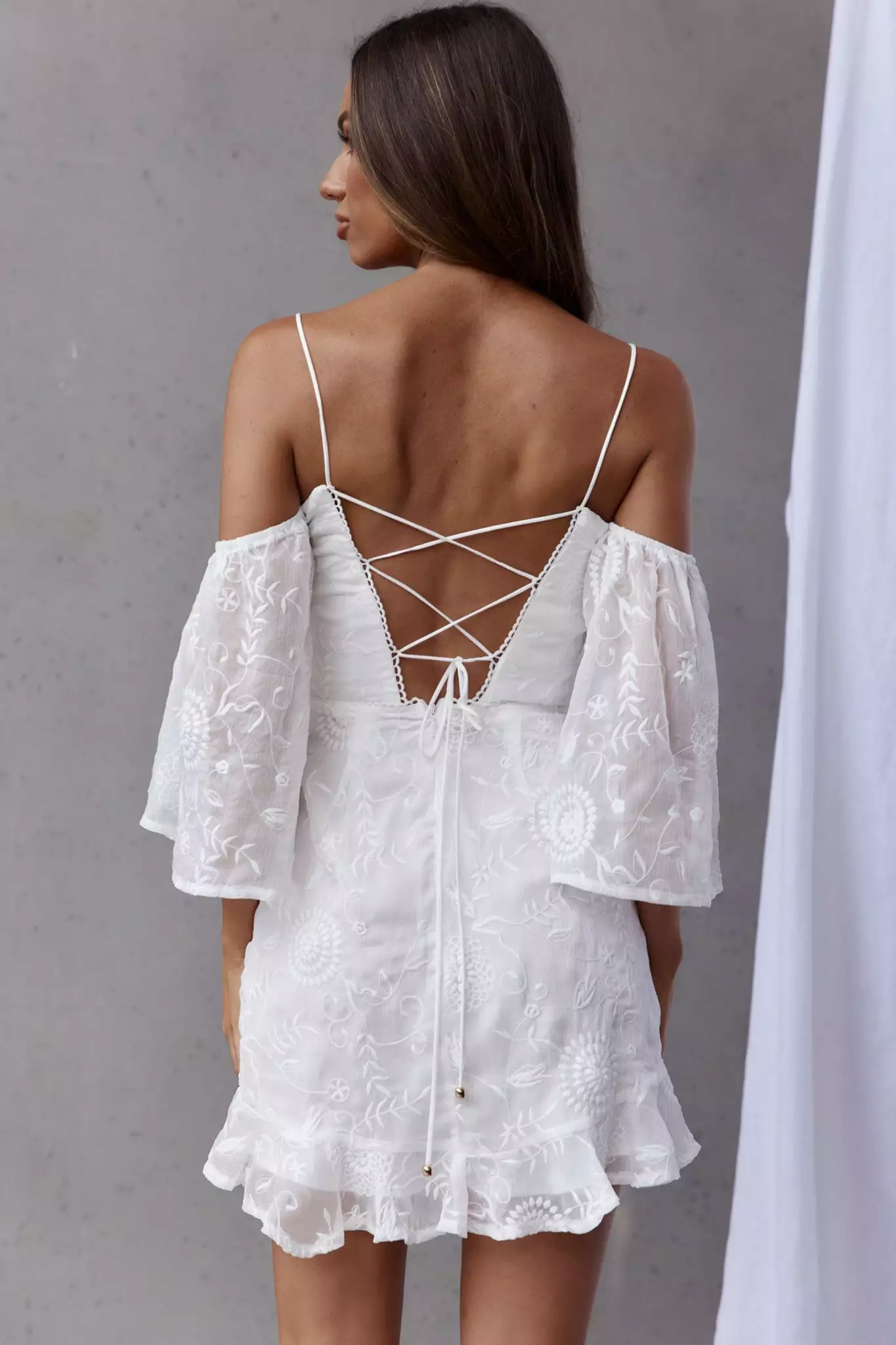 You’re a real life angel in our gorgeous Koda dress. Featuring the prettiest embroidered fabric, off-shoulder bell sleeves and stunning lace-up back. Perfect for a bridal shower or dressy work event. Team it with nude pumps and a chic clutch for an elegant look we are loving.
