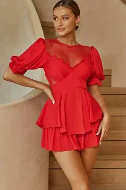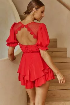 Turn heads in our gorgeous L’amour romper. We are in love with the lace-trimmed bust and hail spot mesh. Perfect for a wedding or dressy evening occasion. Team it with a clutch and perspex mules for a classy look we are loving.
