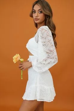 - White paisley lace mini dress