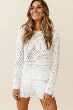 Selfie Leslie Lazy Daze Crochet Knit Shorts White