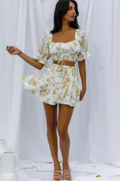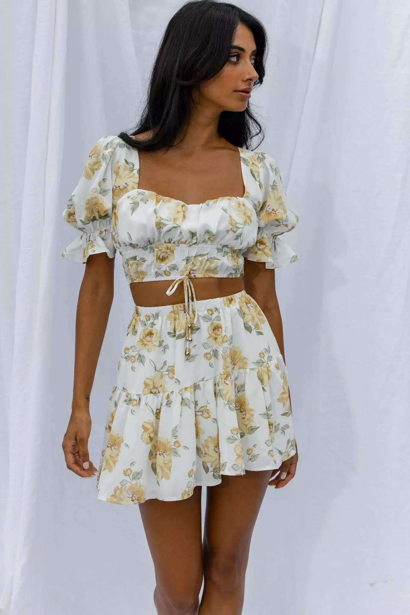 Turns heads in our super cute Lilibet mini skirt. Perfect for weekend brunching with your besties or a lunch date with your crush. Featuring an elasticated waist and a pretty flounce hem. Team it with its matching crop top, mules and a tote for a feminine look we are loving.