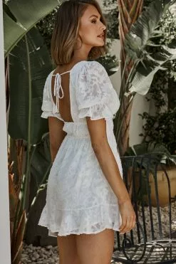 Selfie Leslie Lilibet Puff Sleeve Elasticated Waist Textured Dress White