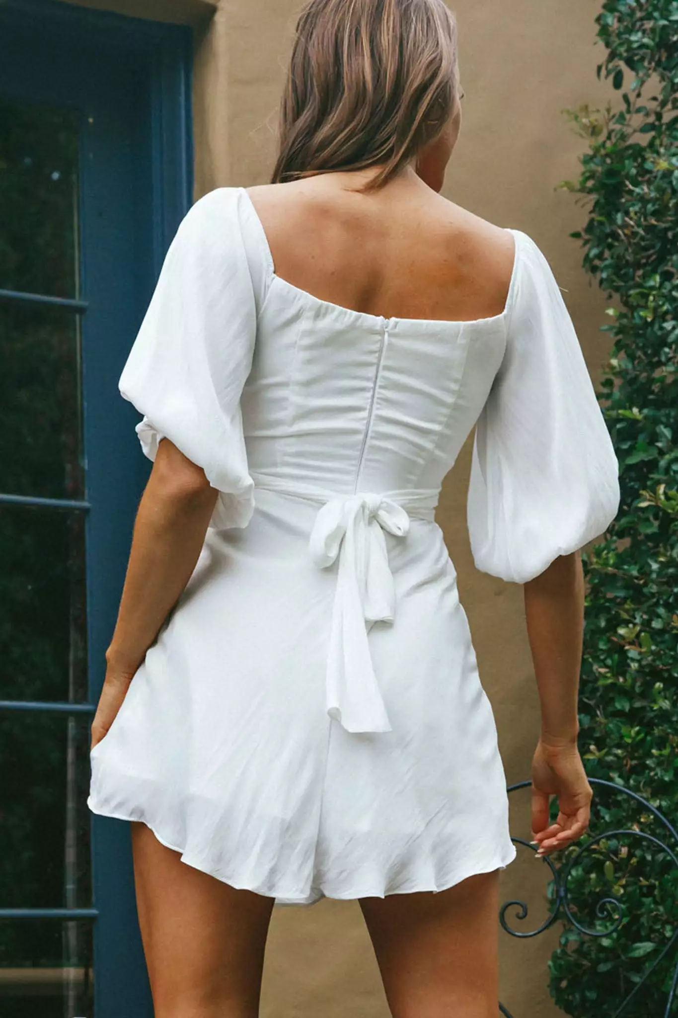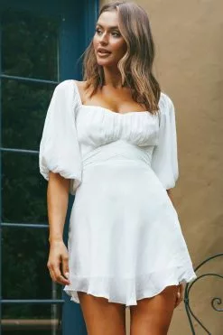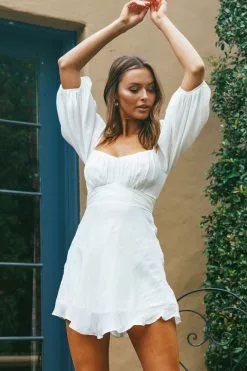 Selfie Leslie Linka On Or Off-Shoulder Half Sleeve Tie-Back Dress White