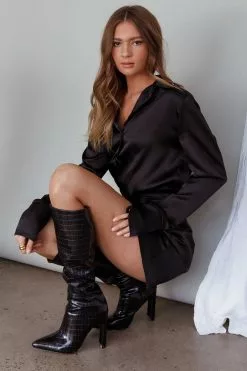 You will go straight to the best-dressed list in our chic Lisbeth dress. We are loving the button-up shirt silhouette and relaxed fit. Perfect for your 9-5 or dinner with your girls. Team it with platform heels for an on-trend look.