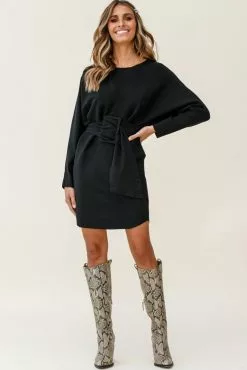 Keep it classy in our Lorelei dress. Featuring a soft knit fabric throughout, long sleeves, loose cut with a wide, removable belt to cinch you in at the waist. Take it from day to night with heels and a coat.