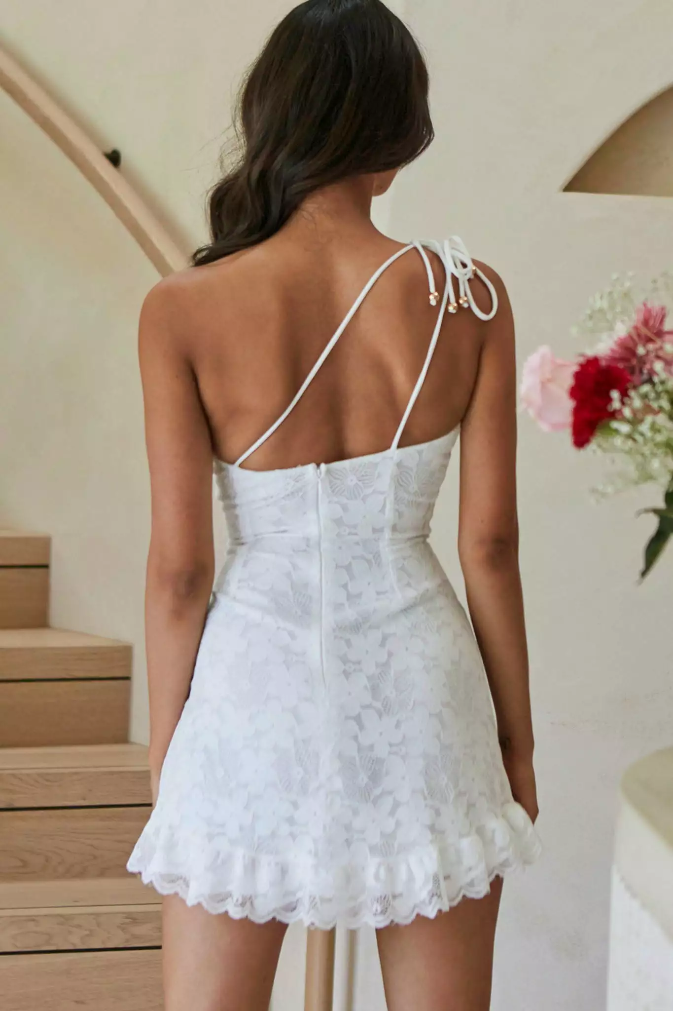 Selfie Leslie Love Divine One-Shoulder Double Strap Mini Dress Lace White
