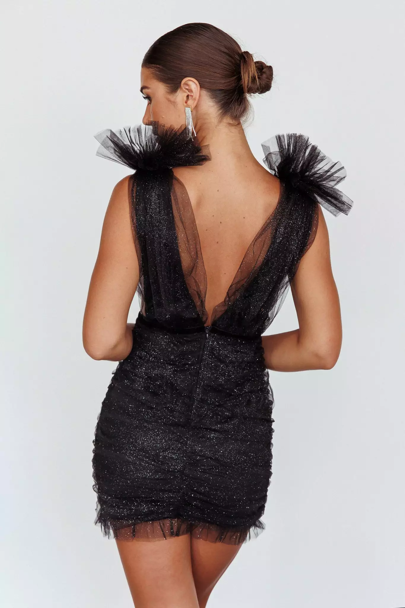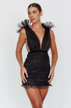 Steal the show in our gorgeous Ludivine mini dress. We are obsessed with its ruched mesh detail and shoulder accents. Perfect for a special birthday occasion where all the attention should be on you! Team it with silver, platform heels for a look we are loving.