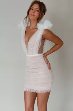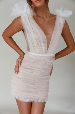 Steal the show in our gorgeous Ludivine mini dress. We are obsessed with its ruched mesh detail and shoulder accents. Perfect for a special birthday occasion where all the attention should be on you! Team it with white, platform heels for a look we are loving.