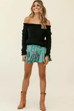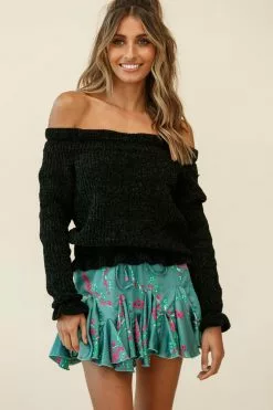 Snuggle up while looking ultra chic in our Mackenzie knit top. Featuring an off-shoulder style, long sleeves and frill hem. Perfect for a movie date teamed with jeans or a skirt and boots.