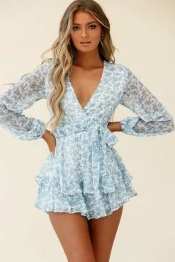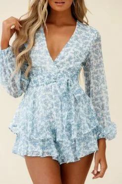 - Blue floral print romper