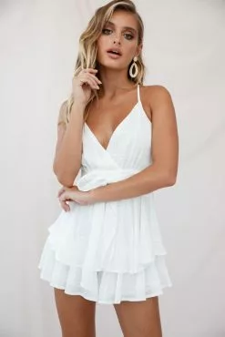 Step into summer with this thin strapped sweetheart dressy romper with tied belt at the waistline.