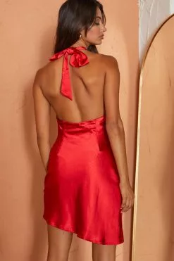 Turn heads in our sexy Made You Look dress. Featuring a gorgeous cowl halterneck and satin fabric throughout. Perfect for a hot date night with your lover or a special birthday dinner. Team it with strappy, nude heels and a clutch for a look we are majorly crushing on.