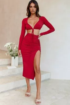 - Wine midi skirt