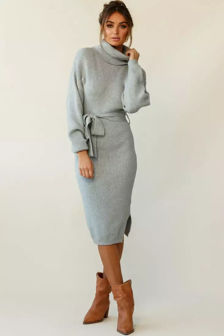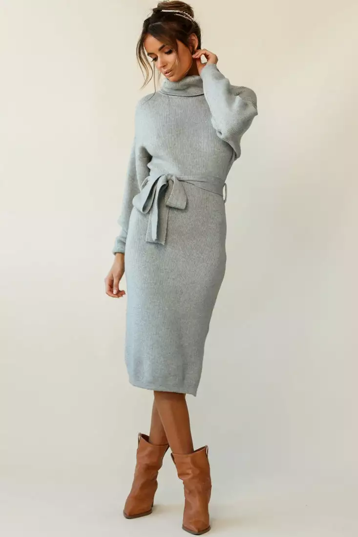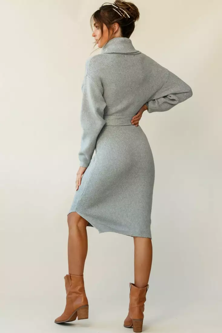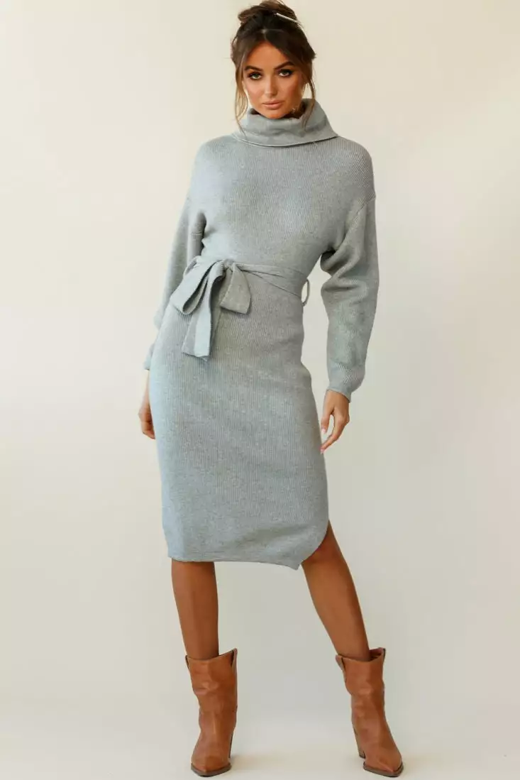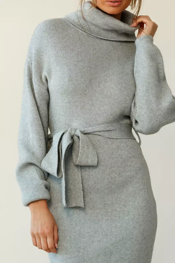 Cozy up in style in our super cute Marco dress. Featuring a wide, foldover turtleneck, long sleeves, belted waist tie and chic midi length. Perfect for coffee catch-ups on a crisp Fall day teamed with boots and a tote.