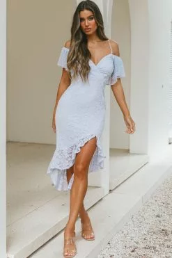 You will steal the show in our gorgeous Maribel midi dress. We are obsessed with its hail spot mesh sleeves and lace-up back feature. Perfect for a wedding or special occasion teamed with nude heels and a chic clutch.