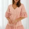 Short and sweet, that’s our Matilda. We are in love with the gorgeous, stretch lace overlay and frilly accents and the cute gold bead detail in the straps. Perfect for a bachelorette or birthday bash teamed with nude, strappy stilettos and a chic clutch. Hot!
