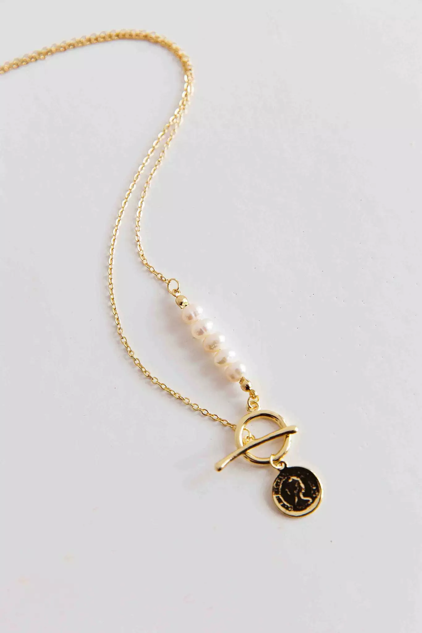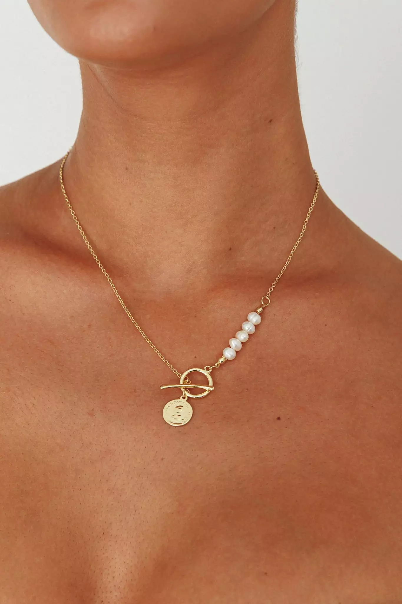 Elevate your look with our gorgeous Meliza necklace. We are in love with the pearl accents and cute, gold coin pendant. Perfect for a wedding or special occasion. Team it with our Fayette dress for a look that will turn heads.