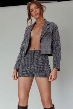 You’ll go straight to the best-dressed list in our chic Midtown jacket. We are in love with that diamante detail throughout. Team it with black pants or our Jackpot diamante shorts for a hot look.