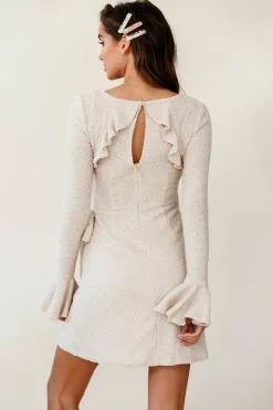 Strut your stuff in our gorgeous Minerva dress. Partially lined, it features a chunky knit fabric, long sleeves with flared cuffs, wrap skirt, and invisible zipper and button closure in the back. Take it from day to night with some pointed toe pumps and gold accent jewelry.