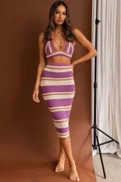 - Lilac striped midi skirt