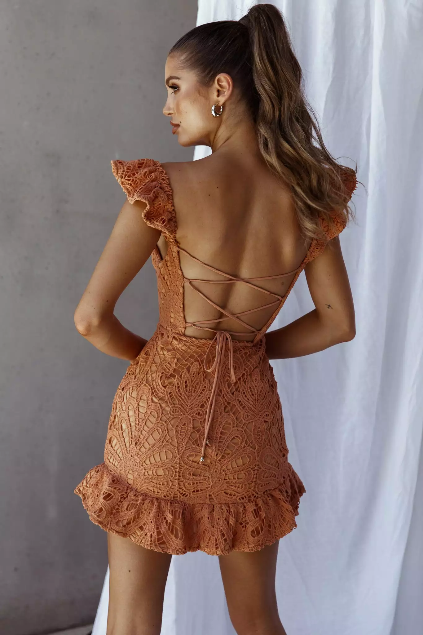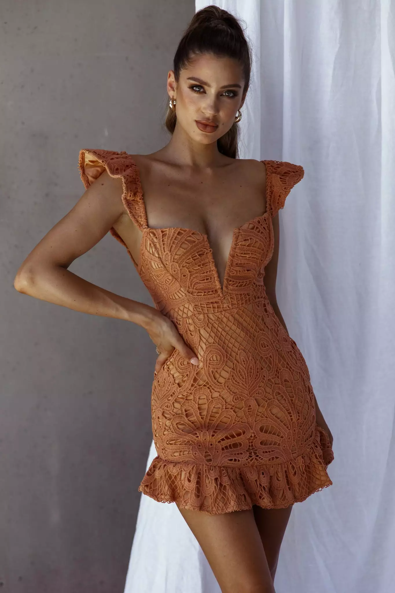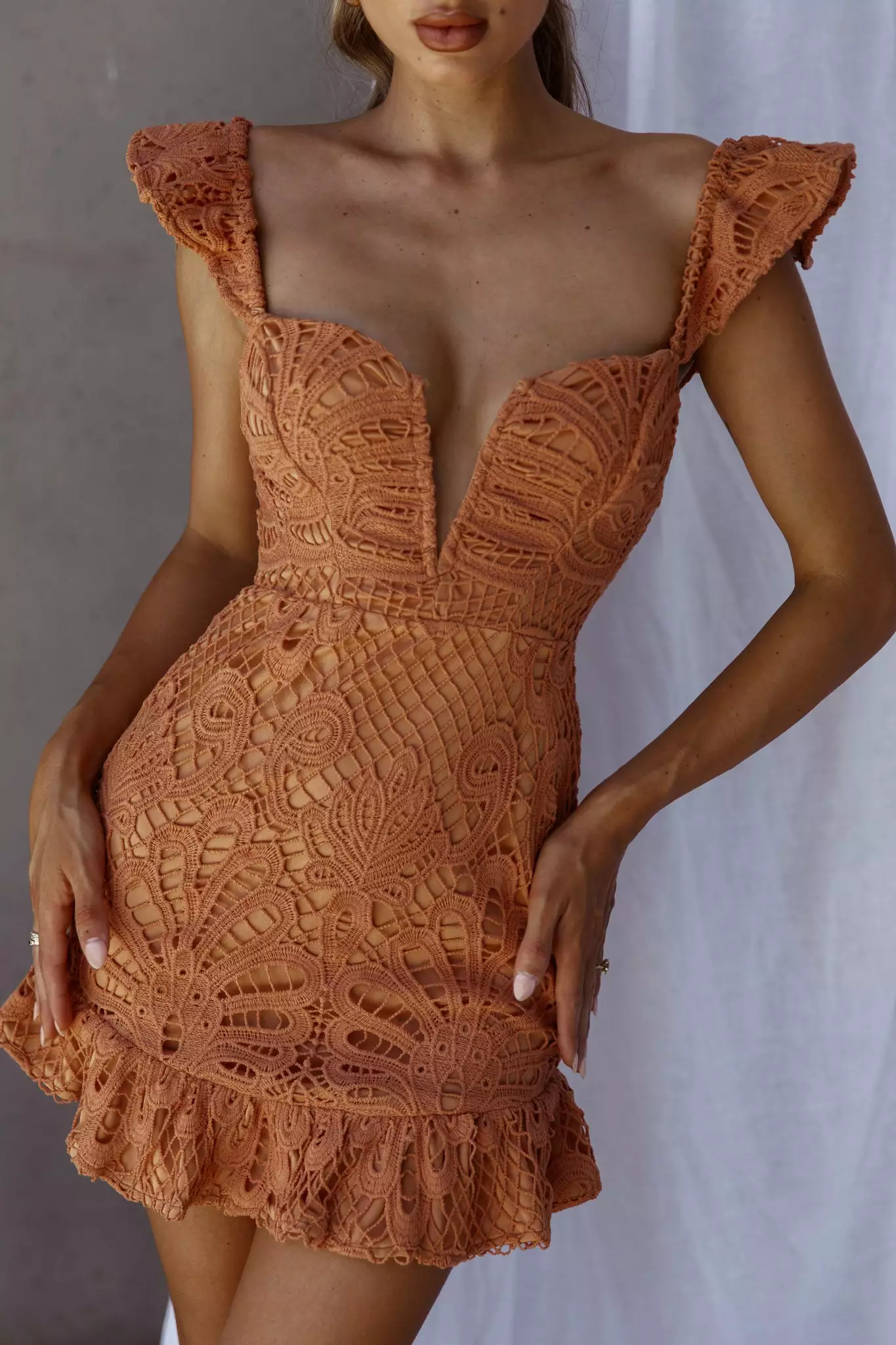 Selfie Leslie Mon Papillon Lace Mini Dress Apricot