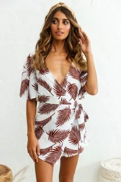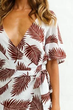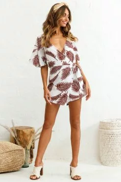 Turn heads in our tropi-cool Nadi romper. Fully lined, it features a V-neckline, flared sleeves, keyhole back and flattering wrap style, tying at the side. We are loving the pretty palm print fabric! Team it with a straw bag and canvas wedges for a day strolling the beach boardwalk with bae.
