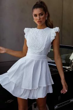 Make a statement in our feminine-chic Nellie dress. We love the unique lace panel over the bust and the gorgeous frill shoulders. Perfect for a special birthday occasion teamed with nude, strappy heels and a clutch.