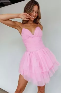 - Barbie pink, mesh mini dress