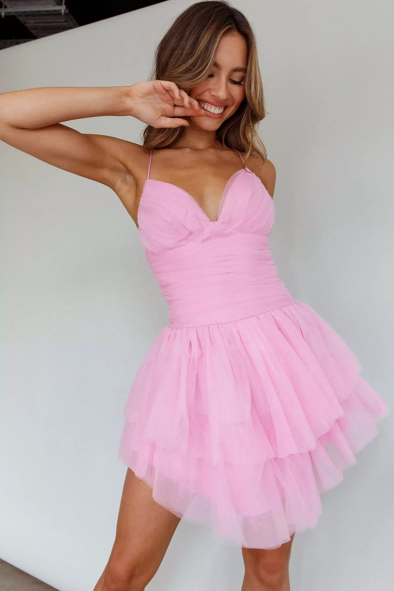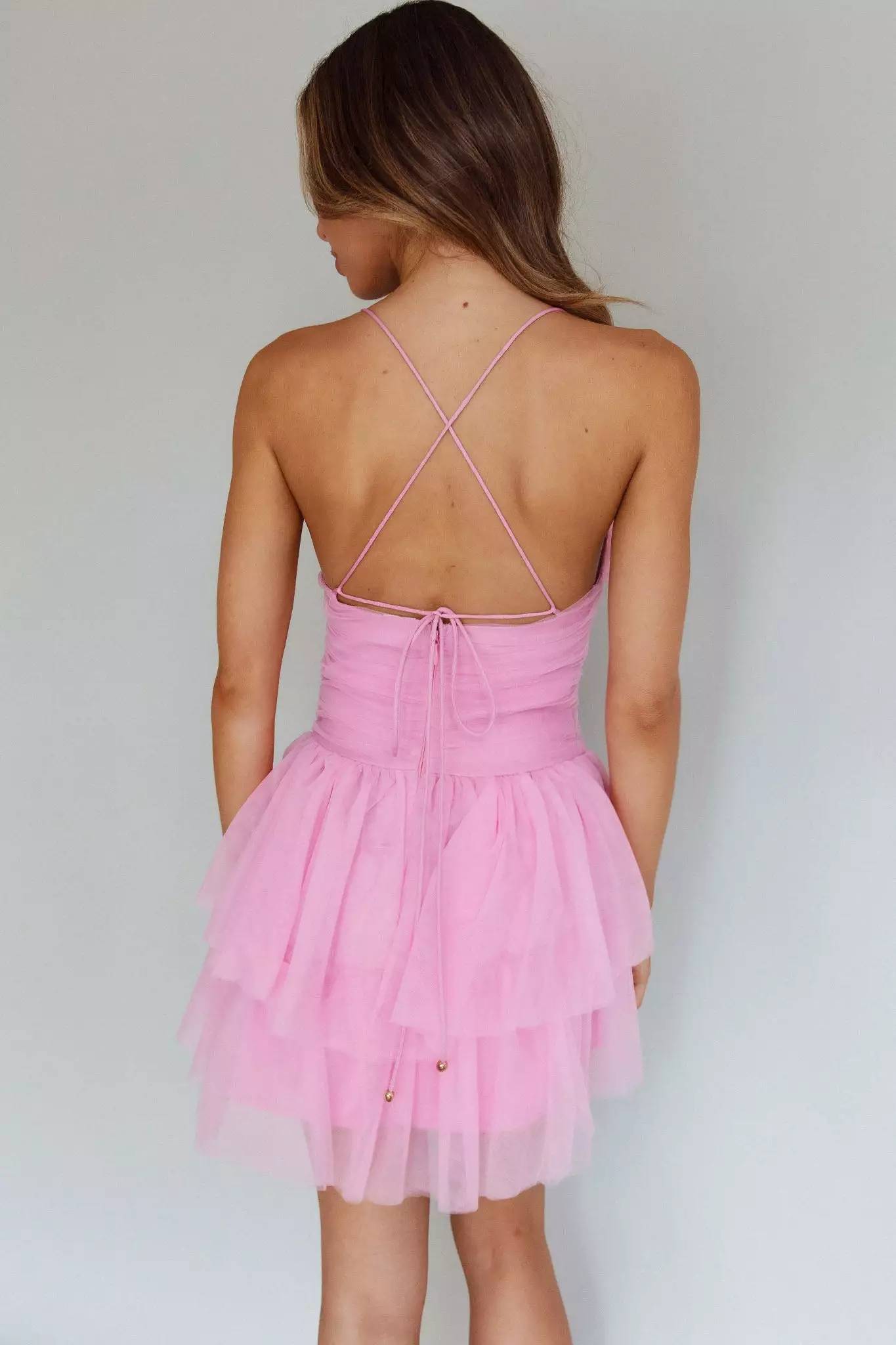 Steal the spotlight in our gorgeous Nightingale mini dress. We are obsessed with its romantic, ruched mesh throughout and tie-up back. Perfect for a special birthday celebration teamed with strappy, silver heels and a clutch.