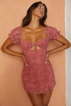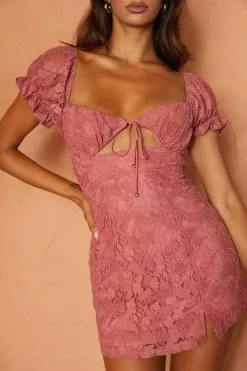 - Rose, lace mini dress