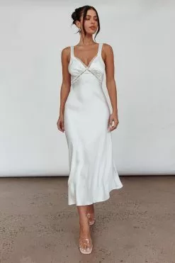 Steal the show in our gorgeous Nyah midi dress. Featuring the sweetest lace trim and cut-out back, it’s perfect for a bridal shower or romantic dinner date. Team it with mules and a purse for an unforgettable look.