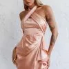 Selfie Leslie On The Prowl Cowl Neck Asymmetrical Hem Dress Spot Print Navy