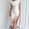 Make them stop and stare in our gorgeous One And Only dress. Perfect for a bridal shower or graduation! We are in love with its one-shoulder style and wrap skirt feature. Team it with a white clutch and heels for an elegant look.