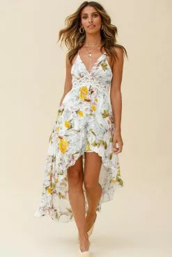 Float through your day in our pretty Over The Moon dress. The high-low hem is a Summer must-have trend and we are obsessed with the lace-trimmed open back. Perfect for warm Summer nights, sipping cocktails by the beach. Team it with nude, strappy heels for a head-turning look.