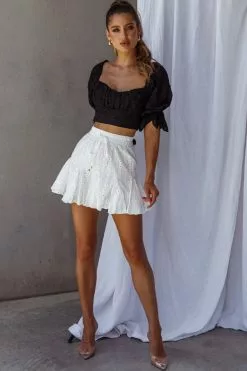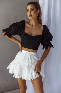 Hello, gorgeous! You will leave a lasting impression in our super cute Passing By crop top. Featuring a ruched bust and puff sleeves. Perfect for weekend brunch or a birthday celebration. Team it with nude heels and our Robyn skirt for a super cute look.
