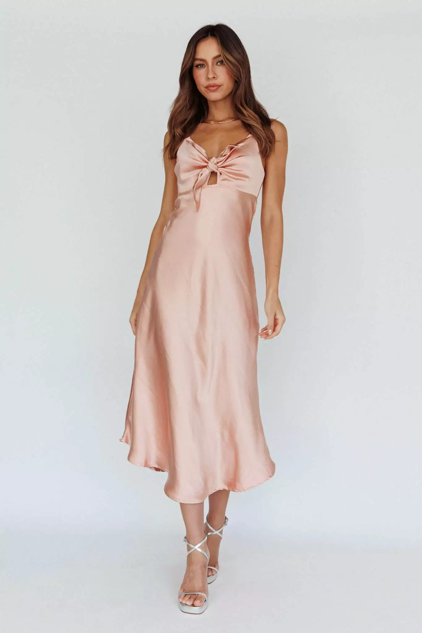 This romantic dress is giving us all the feels. Featuring lightweight, silky fabric that skims your body, super cute tie-detail bust and adjustable straps. Team it with tan sandals for a casual look or dress it up with heels and gold hoops. It’s the perfect midi dress for a perfect day.