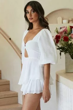 Breeze through your day in our pretty Picture This romper. Featuring 3/4 balloon sleeves and a cut-out feature with in the bust. Perfect for weekend brunching with your besties, it looks amazing with tan mules and a straw tote.
