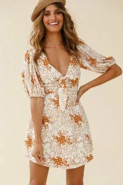 You’ll turn heads everywhere you go in our super cute Portia dress. It’s just the dress you’ve been looking for and the good news is, you can dress it up or down. We are obsessed with that gorgeous tied bust and its puff sleeves. Wear it to work teamed with flats and a tote or dress it up with heels for happy hour with the girls. Guaranteed to become your fav new closet addition.