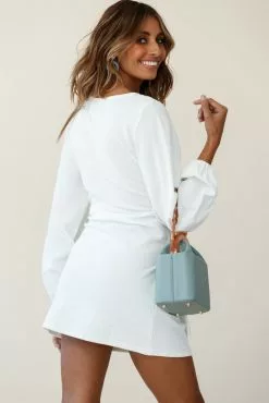 Selfie Leslie Rapt Waist Tie Balloon Sleeve Knit Dress White