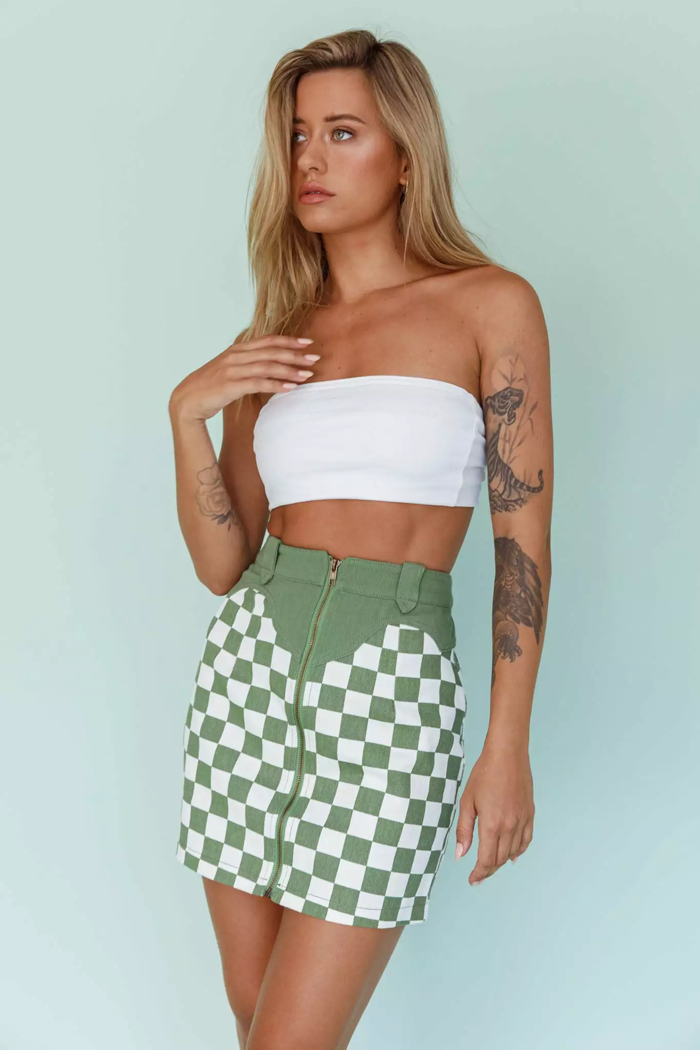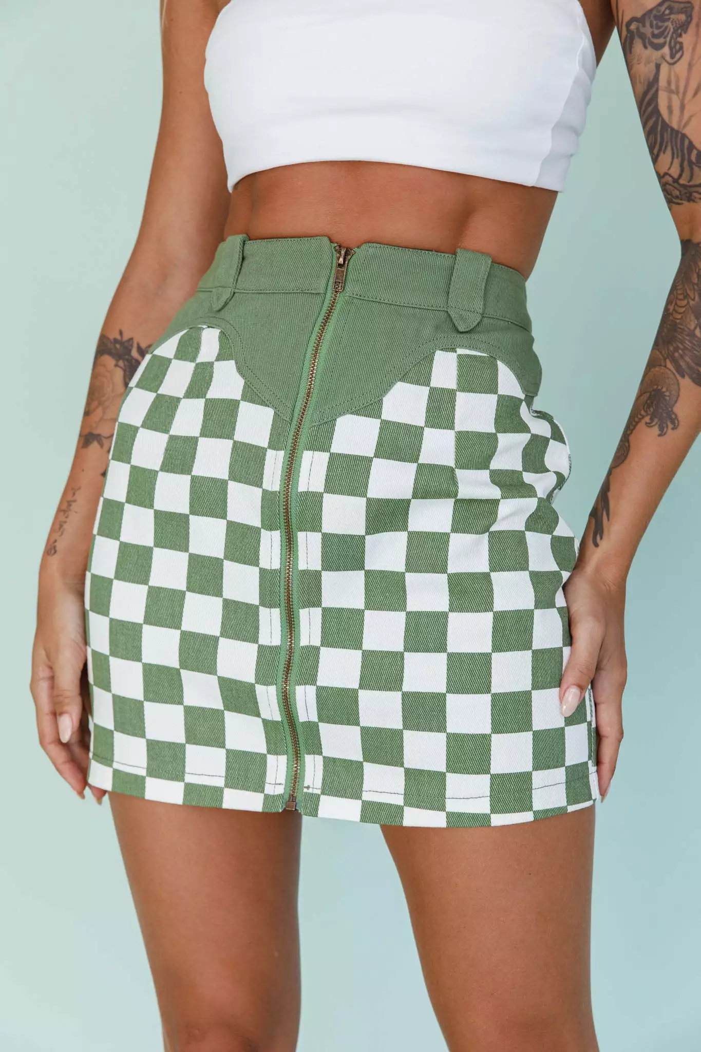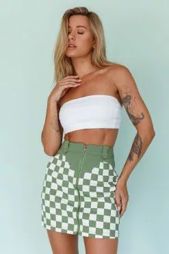 - Green checkered mini skirt