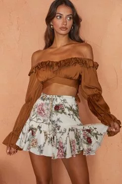 - White floral print mini skirt