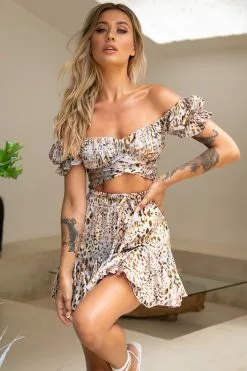 - Leopard print mini skirt