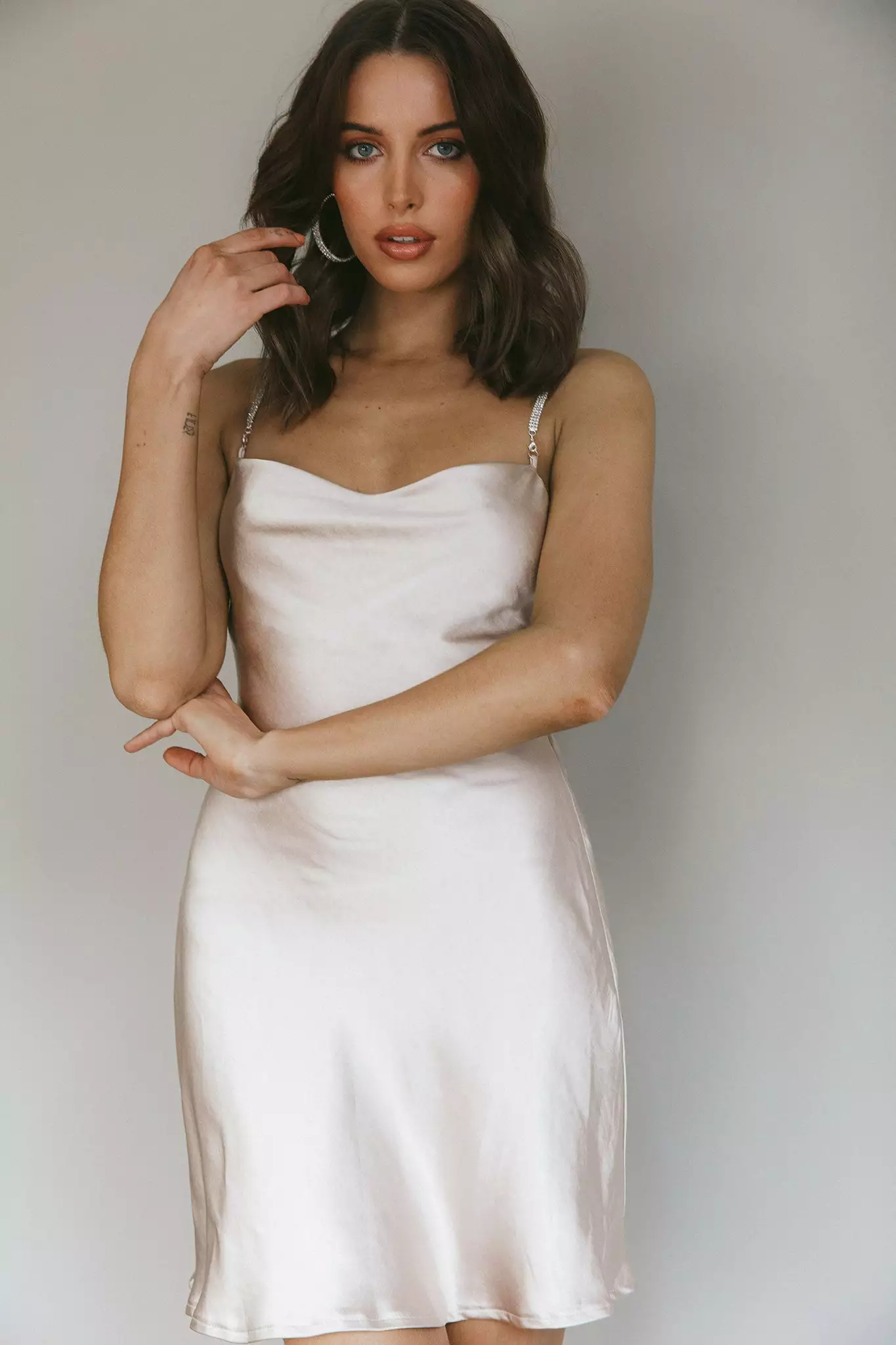 Steal the show in our hot Romance Me satin mini dress. We are in love with its diamante straps and sexy, lace-up back. Perfect for a bachelorette or birthday party. Team it with diamante heels and a clutch for a look that will turn heads.