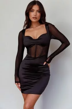 Selfie Leslie Romantica Sheer Insert Mini Dress Black