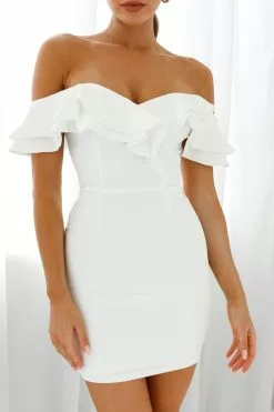 Turn heads in our elegant Rossi dress. Perfect for an upscale work event or bridal shower. Featuring a gorgeous off-shoulder style with a double ruffle accent. Pair it with gold statement earrings and nude heels for a look we are loving.