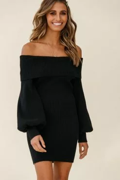 Make them stop and stare in our Runaway dress. Featuring a ribbed-knit fabric throughout, off-shoulder style and cuffed balloon sleeves. Perfect for a flirty first date teamed with boots and hoop earrings. Cute!
