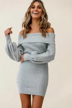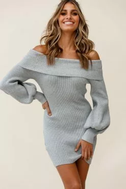 Make them stop and stare in our Runaway dress. Featuring a ribbed-knit fabric throughout, off-shoulder style and cuffed balloon sleeves. Perfect for a flirty first date teamed with boots and hoop earrings. Cute!