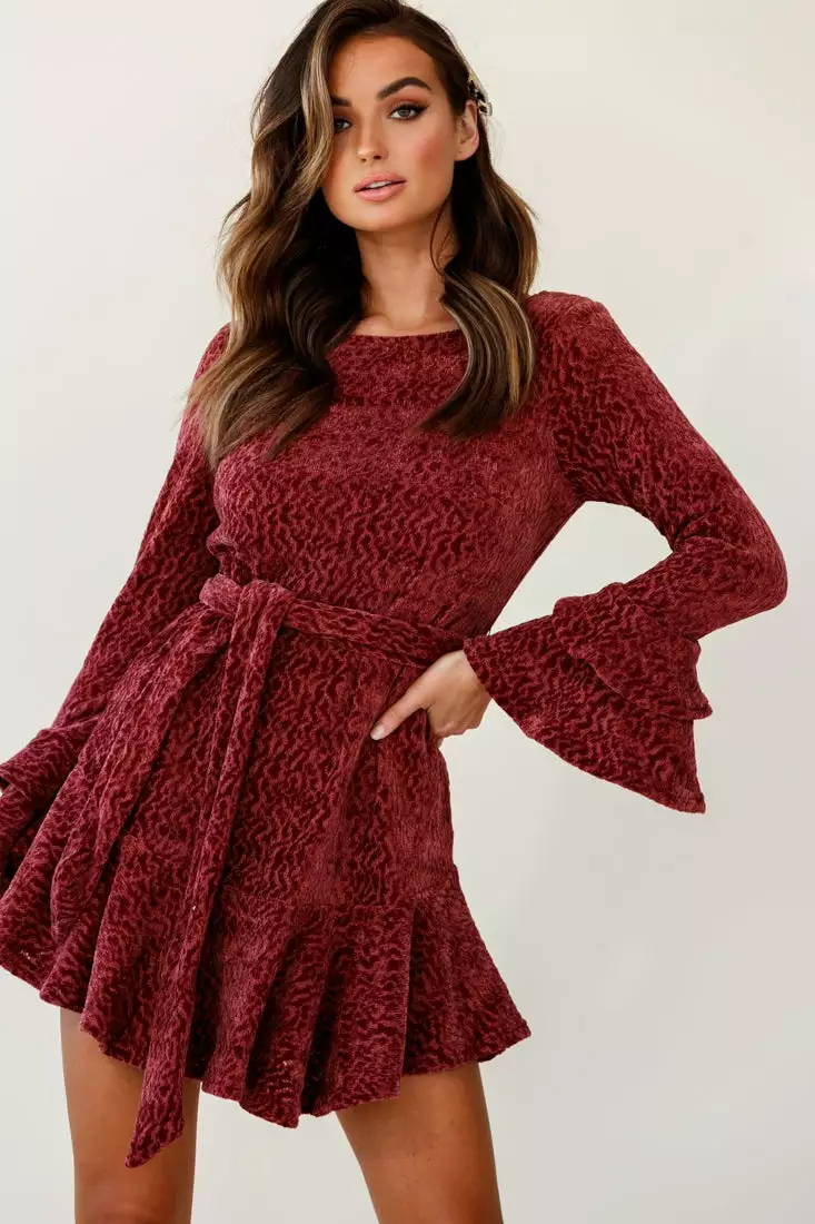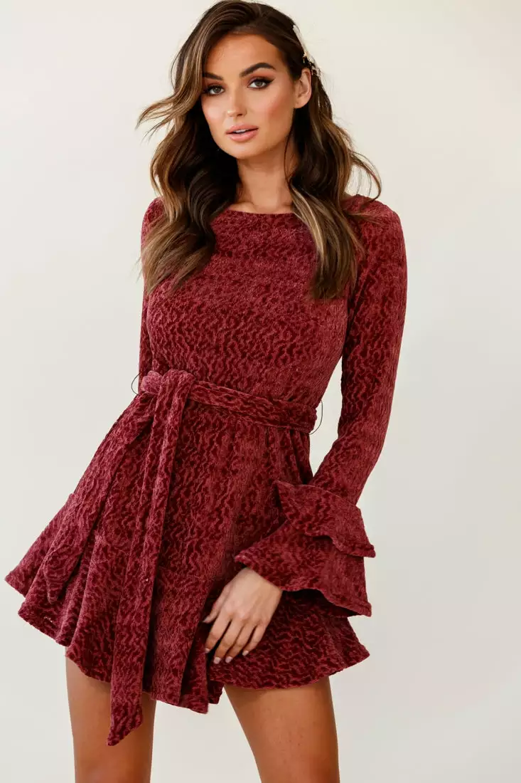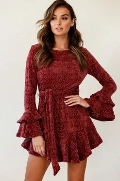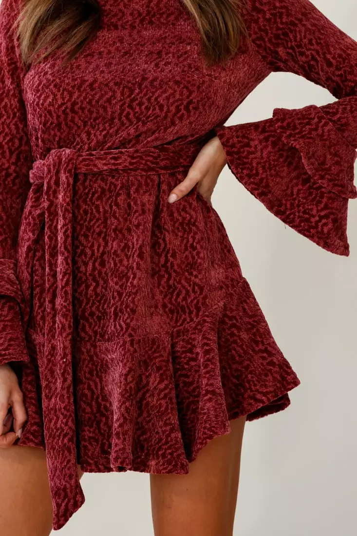 Stay warm and look chic while doing it, in our Saphira dress. Featuring soft knit fabric, layered flare cuffs, separate waist tie and fluted hem. Perfect for a lunch date with your besties teamed with suede thigh-high boots for a look we are loving.