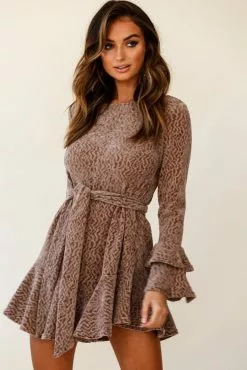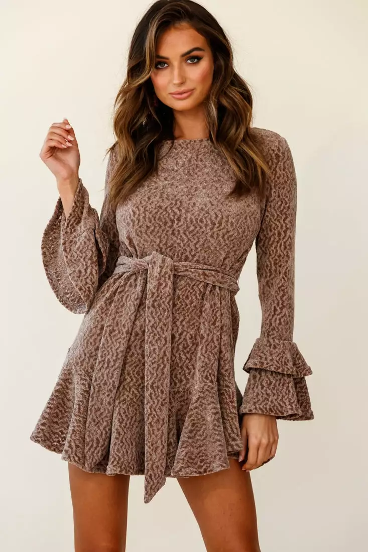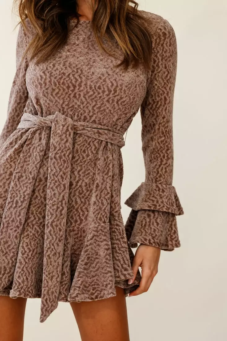 Stay warm and look chic while doing it, in our Saphira dress. Featuring soft knit fabric, layered flare cuffs, separate waist tie and fluted hem. Perfect for a lunch date with your besties teamed with suede thigh-high boots for a look we are loving.